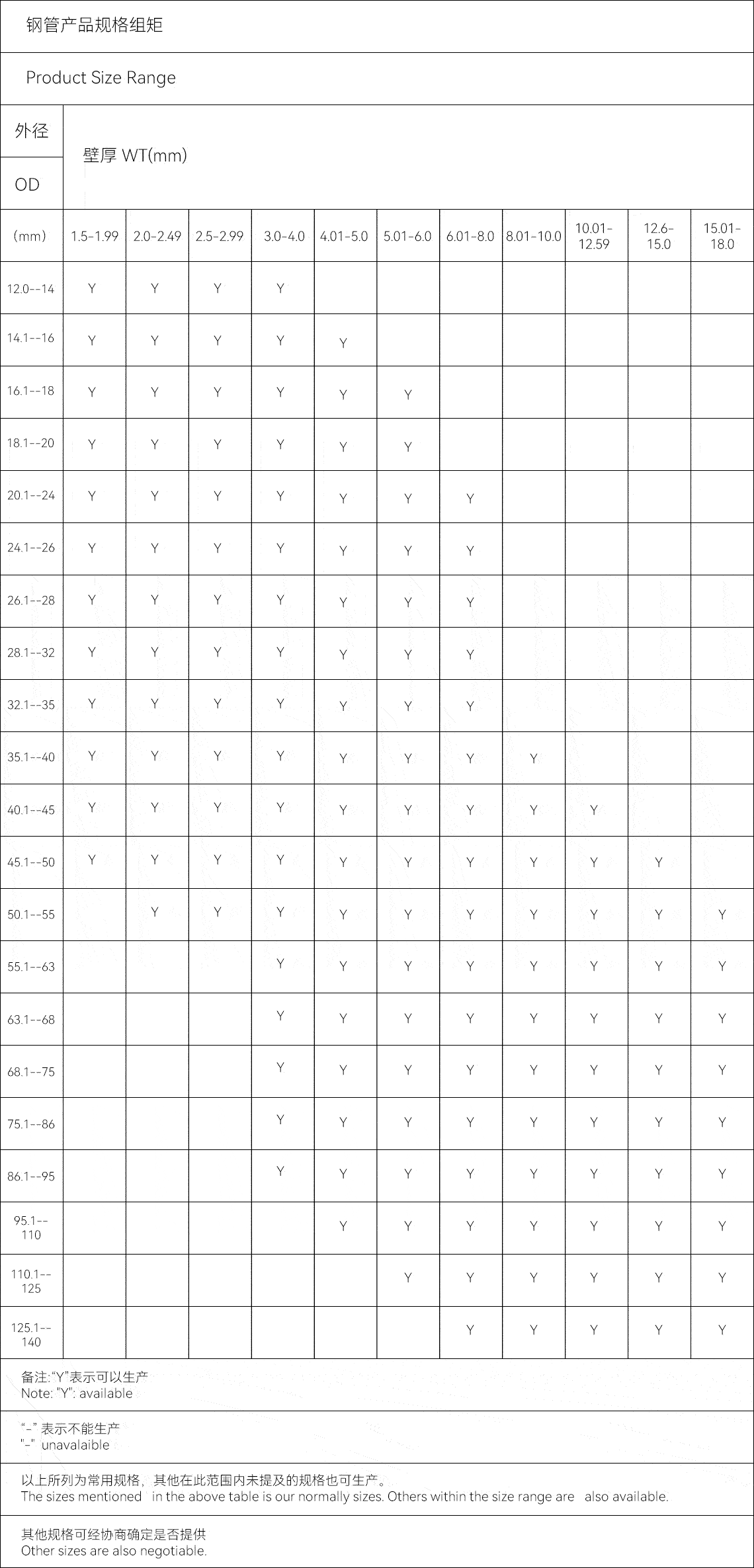 鋼管產品規格組矩Product Size Range外徑壁厚 WT(mm)OD(mm)1.5--1.992.0--2.492.5--2.993.0--4.04.01--5.05.01--6.06.0...