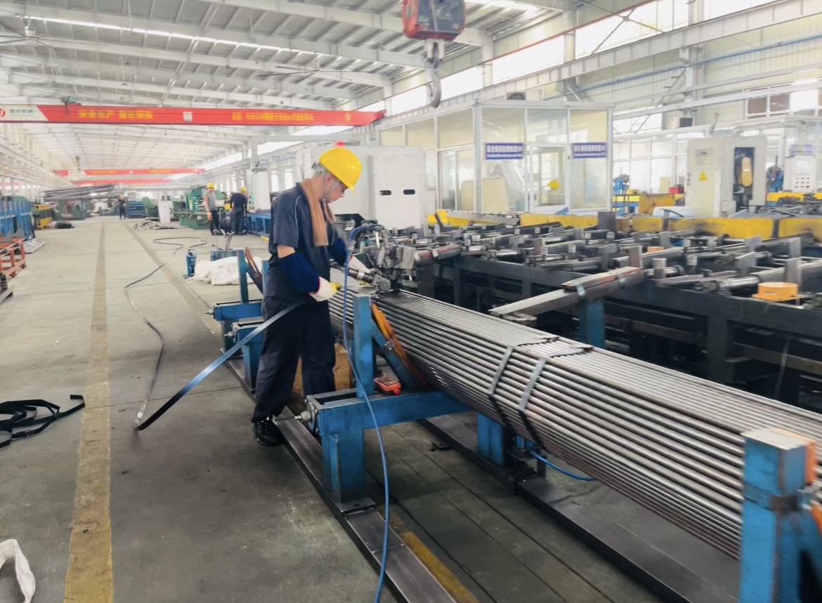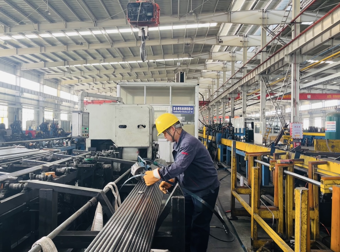 比賽計時開始,參賽選手從對鋼管進行鐵皮扎捆固定到安全平穩的將鋼管稱重并吊運放置在成品料架內的操作一氣呵成。